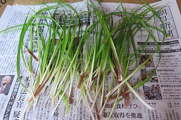 写真は新潟で販売されている団子を結ぶスゲ。長い材で水に浸けると柔軟になり、編める。
