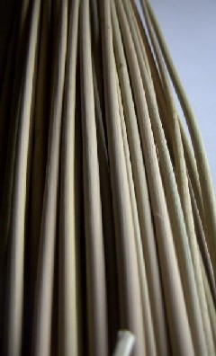 フランスで見た人の話では茎を割って使っていたそうだが、まるっぽのままでも柔らかい。詰まった茎を使ってウイッカワークのかごなどを編む。(葉はない)ドライにしたものを材料店で売っている。