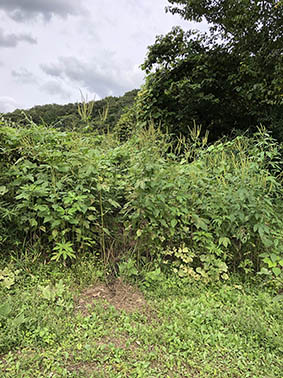 ★素材ノート2020.9:新しい葉をミヤマカンスゲ(カヤツリグサ科)のように真ん中から抜き取ることができる。伝統的な繊維植物ではないものの、葉には繊維があり細いが丈夫な三つ編み、縄を作ることができる。